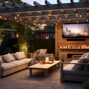 Finally, setting up an outdoor theater experience is arguably one of the most exciting ways to elevate your backyard. Setting up a backyard movie night offers a unique and enjoyable way to entertain family and friends. With just a projector and screen (or an extra tv), you can create an outdoor theater experience that everyone will love. Watching movies under the stars adds a special charm to the evening, providing a break from the routine indoor entertainment. It’s not just about the movie. It’s about the experience of being outdoors, surrounded by nature, and enjoying the company of loved ones. This activity fosters family bonding, creating cherished memories that will be remembered for years to come. Additionally, it’s a great way to host social gatherings, inviting friends and neighbors for fun get-togethers that are sure to be a hit. You can also pick a theme that pairs with the movie and extends to the snacks, dresscode, and more. Plus, it’s cost-effective, saving you money compared to going to a cinema while offering a personalized and customizable movie experience right in your own backyard.